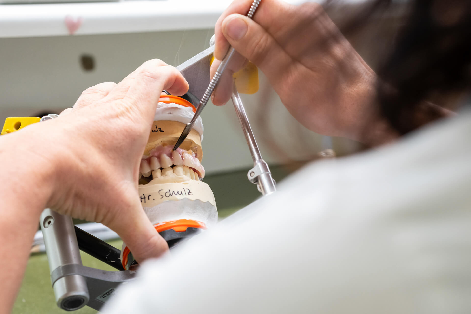 Das Spektrum reicht von Interimsversorgungen bis zur individuellen Totalprothese. CAD/CAM-Basisplatten, angepasste Randgestaltung und charakterisierte Zahnreihen verbessern Halt, Phonetik und Ausdruck. Die Versorgung wird schrittweise geprüft und angepasst. So entsteht eine stabile, pflegefreundliche Lösung mit natürlicher Optik.