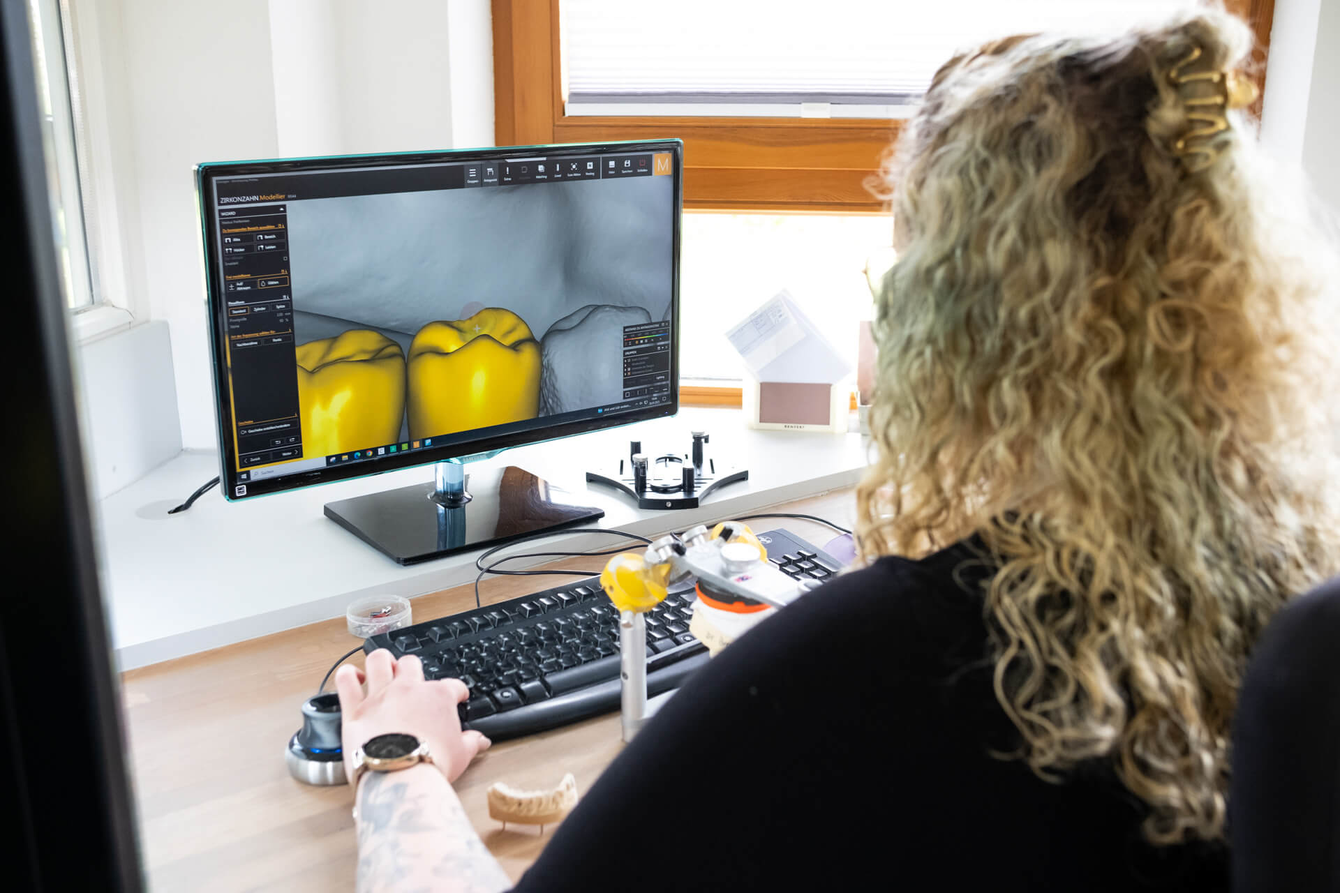 Digitale Konstruktion und Fertigung von Kronen, Brücken, Schienen und Prothesen auf modernsten Fräs- und Drucksystemen. Materialvielfalt von Zirkon über PMMA bis Titan – wirtschaftlich, reproduzierbar und in konstant hoher Qualität. Mit Protokoll und Qualitätscheck.